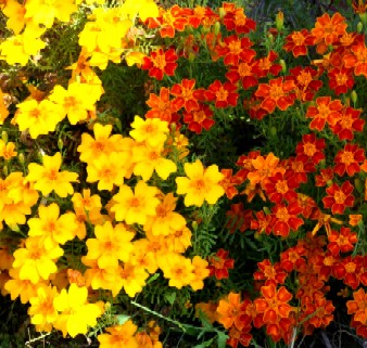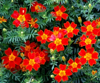 Aksamitník jemnolistý vytváří záplavu jemných jasně barevných květů. Kvete od jara do podzimu. V nádobách přepadává přes okraje.