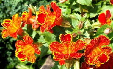 Kejklířka zkřížená vykvétá velkými jasně barevnými květy. Kvete od jara do konce léta.