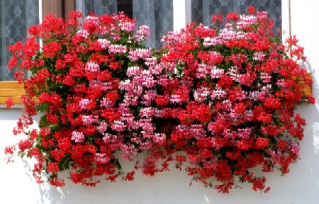 Muškát štítnatý, převislý nebo také pelargónie je asi nejoblíbenější květinou do truhlíků, květináčů a okrasných nádob. Vykvétá počátkem léta a bohatě kvete až do mrazů. Vyžaduje pravidelné hnojení a přiměřenou zálivku.