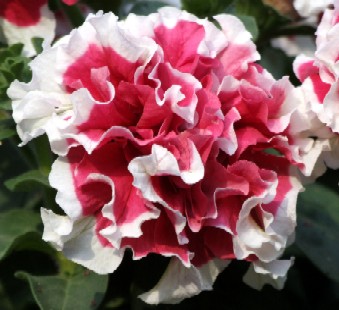 Jednobarevné velkokvěté plnokvěté petúnie jsou Double Cascade F1 20s. 45Kč a Wimbledon F1 20s. 45Kč.
