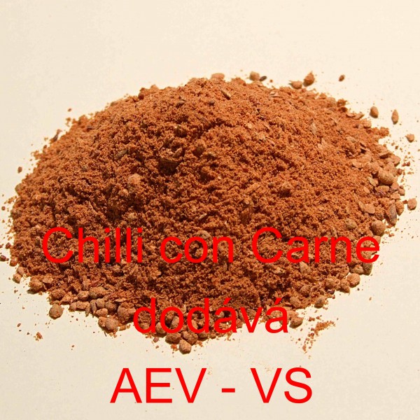 Popis: Chilli con Carne, obsahuje: česnek, kmín, chilli, papriku, oregano, koriandr, rajčatový prášek, cibuli, majoránku