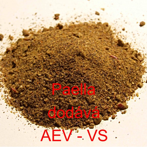 Paella je sytě žlutá až oranžová ostrá směs koření na paellu, mořské plody, kuře, rýži, těstoviny, dušenou zeleninu, zeleninové polévky, atd.