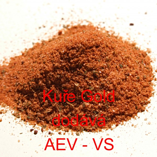Kuře Gold je nepálivá cihlově červená směs koření na pečení a grilování kuřecího, krůtího a králičího masa