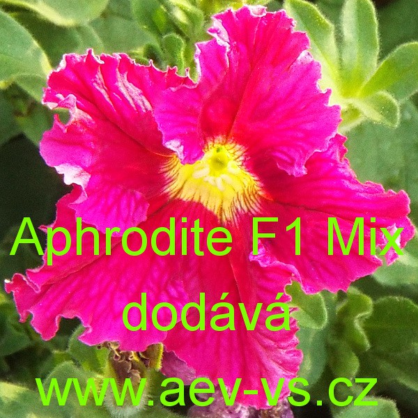 Popis: Petúnie velkokvětá, třepenitá, nízká (Petunia hybrida grandiflora fimbriata nana) Aphrodite F1 Mix je směs nízkých velkokvětých jednoletých květin s třepenitými okraji květů. Vykvétá "obřími", v průměru asi 7,5 až 8,5 centimetrovými květy. Hodí se na záhon, do truhlíku, květináče a okrasného koryta. Semena se dodávají ve výběrové kvalitě Professional Seeds.