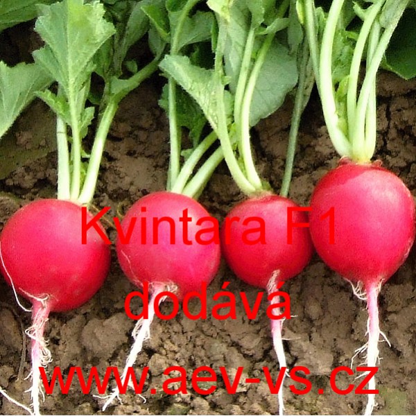 Ředkvička (Raphanus sativus var. sativus) Kvintara F1 je velmi raná "celoroční" červená kulovitá hybridní ředkvička vhodná pro jarní, letní i podzimní pěstování.