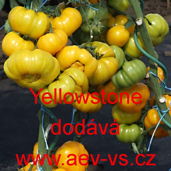 Rajče tyčkové (Solanum lycopersicum L.) Yellowstone je polorané masité asi 250 až 350 gramové žluté tyčkové rajče na záhon, do fóliového krytu i skleníku.