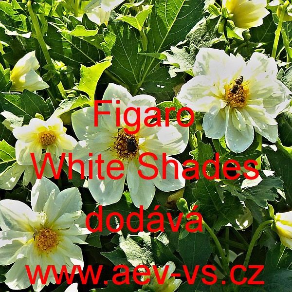 Jiřinka proměnlivá (Dahlia variabilis) Figaro White Shades je nízká bílá (v odstínech) plnokvětá jednoletá květina.