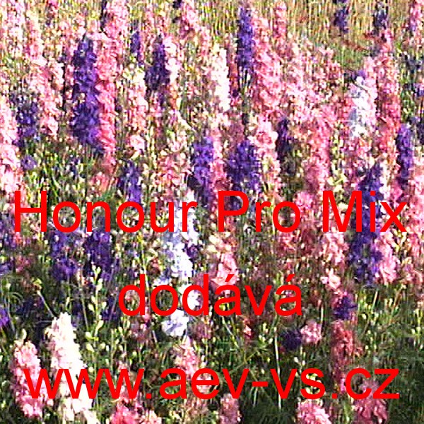 Popis: Ostrožka stračka (Consolida regalis) Honour Pro Mix je asi 90 centimetrů vysoká plnokvětá velice dekorativní výběrová směs jednoletých květin s pevnými stonky. Obsahuje barvy: bílou, růžovou, šeříkovou, karmínovou, světle modrou, tmavě modrou, modrofialovou, atd., v odstínech. Sáček semen nemusí obsahovat všechny barevné variety. Hodí se do vázy, k řezu. Dá se i usušit a použít do suchých vazeb. Ani po usušení nestrácejí okvětní lístky intenzivní barvy.
