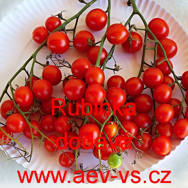 Rajče tyčkové (Solanum lycopersicum L.) Rubinka je rané kulaté sladké červené třešňové tyčkové rajče do skleníku, fóliovníku i na záhon. Vytváří malé, ale za to moc dobré, příjemně sladce rajčatové aromatické neopadávající a nepraskavé plody.