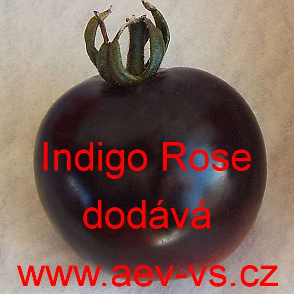 Popis: Rajče tyčkové (Solanum lycopersicum L.) Indigo Rose je polorané černé (černofialové) kulaté asi 70 až 90 gramové tyčkové rajče s růžově červenou dužninou. Hodí se do skleníku, fóliovníku i na prosluněný záhon.