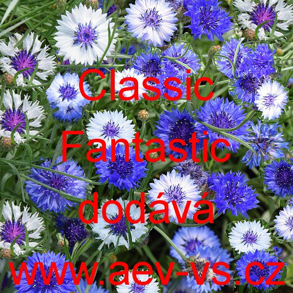 Popis: Chrpa modrá, polní (Centaurea cyanus) Classic Fantastic je směs asi 80 až 100 centimetrů vysokých bílých, modrých, fialových i dvoubarevných jednoduchých až poloplnokvětých jednoletých květin. Pěstovat ji můžeme na záhonu i ve vetším květináči, truhlíku nebo okrasném korytu na balkonu nebo terase. Květy této směsi jsou plné sladkého nektaru vyhledávají je motýli, včely a čmeláci.
