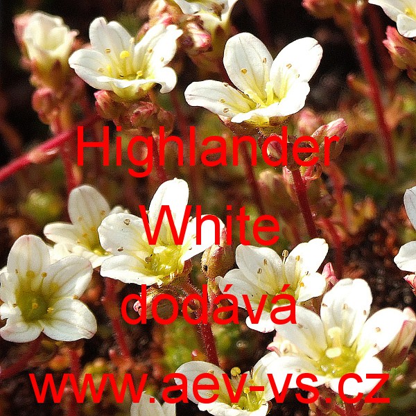 Lomikámen Arendsův (Saxifraga x arendsii) Highlander White je bílá nízká stálezelená vytrvalá květina. Hodí se na záhon, do truhlíku, okrasného koryta, květináče i na skalky.