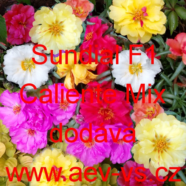 Šrucha velkokvětá (Portulaca grandiflora) Sundial F1 Caliente Mix je směs nízkých hybridních velkokvětých plnokvětých jednoletých květin.