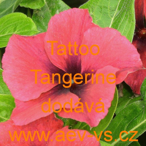 Popis: Barvínek růžový, katarantus, vinca (Catharanthus roseus) Tattoo Tangerine je košatá asi 25 až 35 centimetrů vysoká a asi 15 až 20 centimetrů široká barevně velice neobvyklá a dekorativní tmavěji oranžovo/červená jednoletá květina s tmavě fialovým středem a bílým okem uprostřed květu. Hodí se na záhon, do truhlíku, květináče, okrasného koryta a závěsných nádob. Výborně kvete i na přímém slunci. Semena se dodávají ve výběrové kvalitě Professional Seeds.