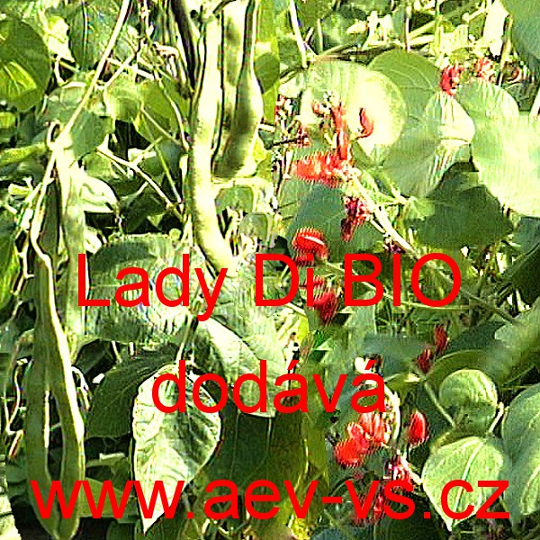 Popis: Fazol pnoucí šarlatový (Phaseolus coccineus) Lady Di BIO je raný pnoucí chorobám velice odolný šarlatový fazol. Pne se do výšky až asi 200 centimetrů. Vykvétá zářivě červenými květy. Vytváří asi 30 až 40 centimetrů dlouhé zelené šťavnaté ploše kulovité bezvláknité lusky a velká černá světle hnědě melírovaná semena. Mladé, ve vodě opláchnuté, v páře spařené (uvařené, podušené) na kousky nasekané lusky můžeme konzumovat celé. Používáme je do zeleninových salátů i jako přílohu k masitým jídlům. Výborné jsou třeba s ochucenou smetanovou omáčkou a bramborem.