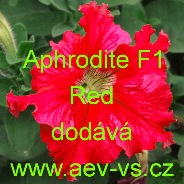 Popis: Petúnie velkokvětá třepenitá nízká (Petunia hybrida grandiflora fimbriata nana) Aphrodite F1 Red je nízká velkokvětá "obří asi 7,5-8,5 cm květy" červená jednoletá květina s třepenitými okraji květů. Hodí se na záhon, do truhlíku, květináče a okrasného koryta. Semena se dodávají ve výběrové kvalitě Professional Seeds.