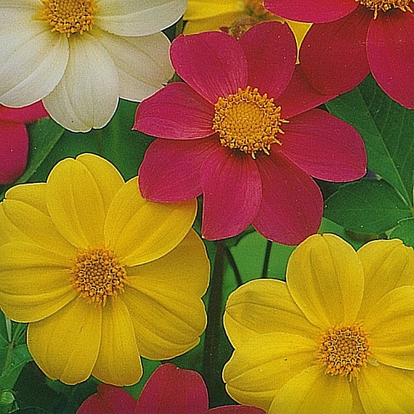 Jiřinka proměnlivá Mardi Gras je směs jednoduchých vytrvalých hlíznatých květin.
