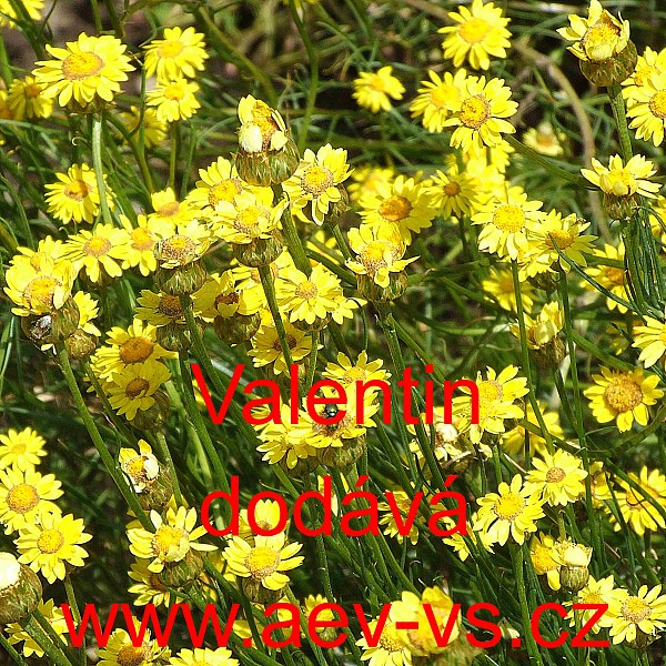Popis: Smil šídlolistý, slaměnka (Helichrysum subulifolium) Valentin je asi 30 centimetrů vysoká kanárkově žlutá jednoletá květina. Dá se využít i na sušení, do suchých vazeb.