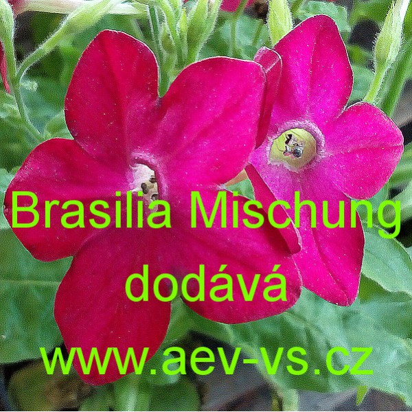 Popis: Tabák Sandeřin, Sanderův (Nicotiana sanderae) Brasilia Mischung je asi 45 centimetrů vysoká směs voňavých jednoletých květin.