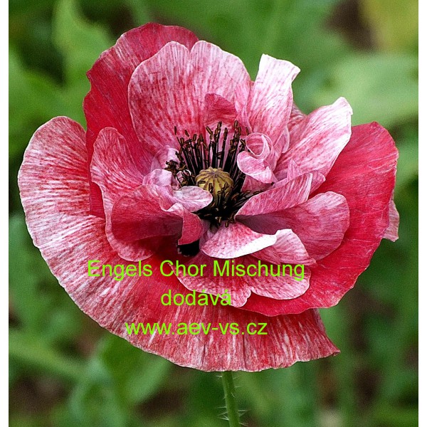 Popis: Mák vlčí (Papaver rhoeas) Engels Chor Mischung je asi 60 centimetrů vysoká poloplná až plnokvětá směs jednoletých květin. Dá se využít i na sušení, do suchých vazeb.
