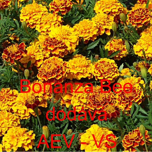 Popis: Aksamitník rozkladitý (Tagetes patula) Bonanza Bee je asi 20 centimetrů vysoká zlatožlutá plnokvětá jednoletá květina s hnědým okrajem květu. Hodí se na záhon, do truhlíku, květináče a okrasného koryta. Semena se dodávají ve výběrové kvalitě Professional Seeds.