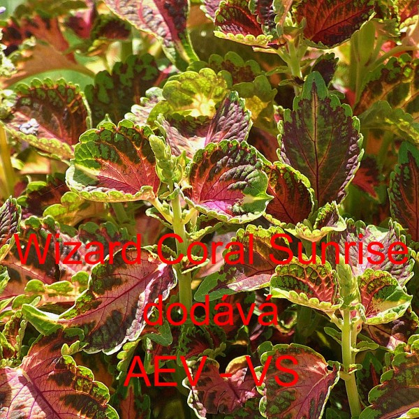 Popis: Africká kopřiva, Pochvatec ozdobný, šišákovitý, Kopřivěnka zkřížená (Coleus blumei) Wizard Coral Sunrise je asi 30 centimetrů vysoká jednoletá květina. Vytváří okrasné korálově červené listy. Hodí se na záhon, do truhlíku, květináče, závěsných nádob a okrasného koryta. Semena se dodávají ve výběrové kvalitě Professional Seeds.