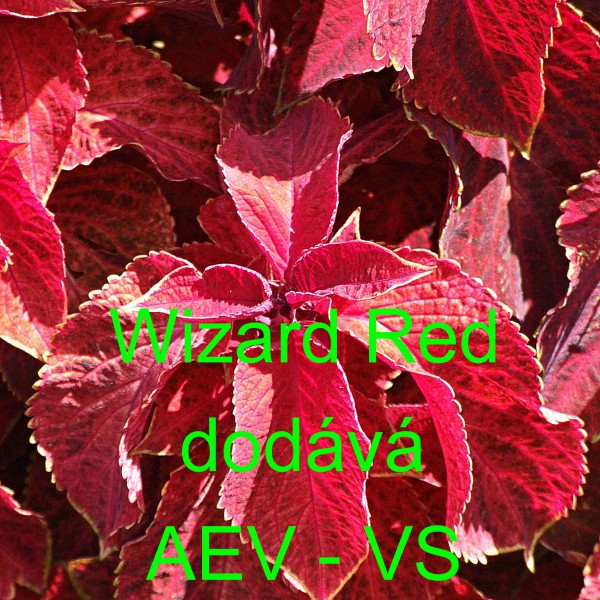 Africká kopřiva, Pochvatec ozdobný, šišákovitý, Kopřivěnka zkřížená (Coleus blumei) Wizard Velvet Red je nízká jednoletá květina. Vytváří okrasné tmavě červené listy.