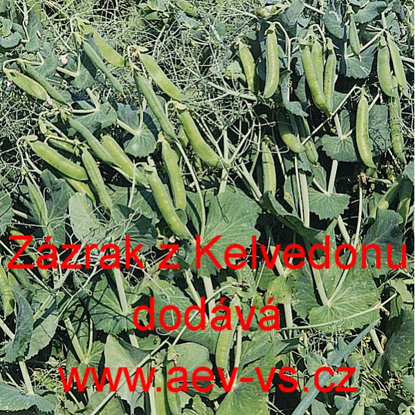 Popis: Hrách setý dřeňový (Pisum sativum L.) Zázrak z Kelvedonu je raný asi 70 až 75 centimetrů vysoký osvědčený zelenoluský dřeňový hrách setý. V lusku vytváří 6 až 8 velkých semen.