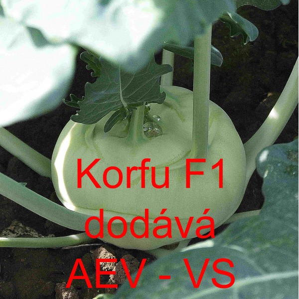 Kedluben (Brassica oleracea var. gongylodes) Korfu F1 je velmi raný/raný bílý hybridní kedluben vhodný pro rychlení i "celoroční" pěstování na záhonu.