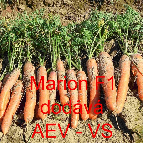 Popis: Mrkev obecná (Daucus carota ssp. Sativus) Marion F1 je raná asi 15 až 17 centimetrů dlouhá tupě ukončená mrkev obecná, karotka pro "celoroční" pěstování. Hlava kořene nezelená.