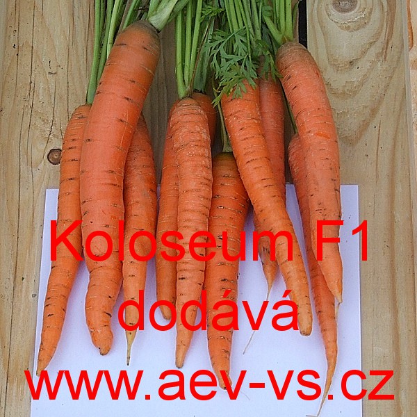 Popis: Mrkev obecná (Daucus carota ssp. Sativus) Koloseum F1 je pozdní asi 25 až 30 centimetrů dlouhá kónická mrkev obecná vhodná na přímý konzum i dlouhodobé skladování.