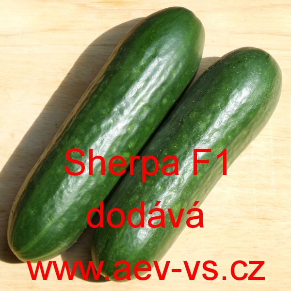 Popis: Okurka setá salátová (Cucumis sativus) Sherpa F1 je raná tmavě zelená chorobám odolná hladká asi 16-18 centimetrů dlouhá hybridní partenokarpická salátová okurka setá "hadovka" do skleníku. Dobře snáší i výkyvy teplot.