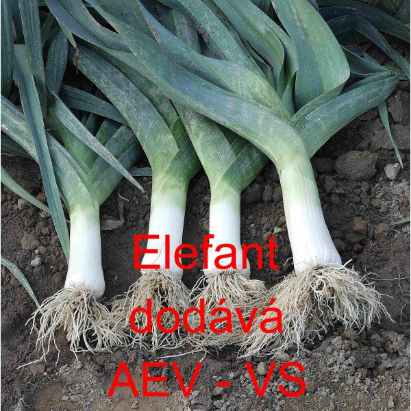 Pór zahradní (Allium porrum L.) Elefant je osvědčený tmavě zelený pór zahradní k přezimování. Délka vybělené části je asi 15-20 centimetrů.