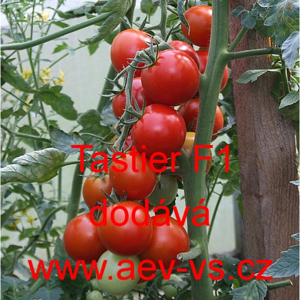 Rajče tyčkové (Solanum lycopersicum L.) Tastier F1 je polopozdní pevné LSL kulovité "koktejlové" asi 50-60 gramové červené tyčkové hybridní rajče. Vytváří asi 8-10 plodů na vijanu. Je vysoce odolné chorobám rajčat.