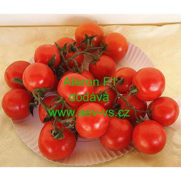 Popis: Rajče tyčkové (Lycopersicon esculentum Mill.) Ateron F1 je polopozdní červené tyčkové hybridní rajče pro studené i teplé rychlení, v teplejších oblastech i na záhon. Na jednom vijanu vytvoří asi 8-10 kulatých pevných LSL asi 110-125 gramových plodů. Odolává chorobám rajčat.