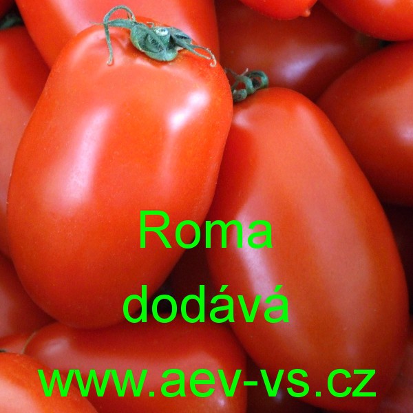 Popis: Rajče polotyčkové (Lycopersicon lycopersicum) Roma je rané polotyčkové červené vejcovité „masité“ rajče na záhon. Je výborné na kečupy a šťávy.