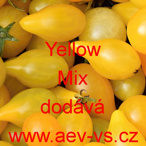 Popis: Rajče tyčkové "hruštičky" (Lycopersicon lycopersicum) Yellow Mix je speciální směs žlutých (v odstínech) hruštičkovitých tyčkových rajčat do fóliovníku, na záhon a velkých květináčů nebo truhlíků na balkon nebo terasu.