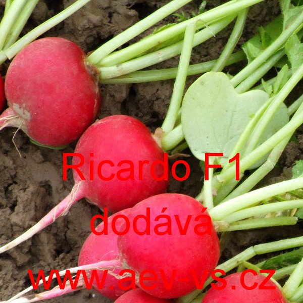 Ředkvička (Raphanus sativus var. sativus) Ricardo F1 je letní červená v průměru až 6 centimetrů velká hybridní ředkvička na záhon.