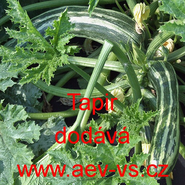 Tykev obecná cuketa (Cucurbita pepo) Tapir je keříčkovitá žíhaná tykev obecná cuketa na záhon. Vytváří lesklé zelené plody s podélným světle i tmavě zeleným žíháním.