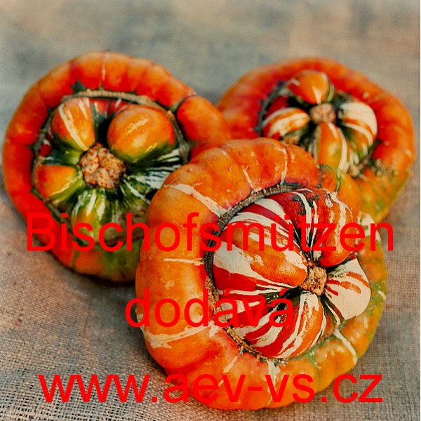 Popis: Tykev obecná (Cucurbita pepo) Bischofsmützen je raná asi 2-4 kilogramová dělená zelená/oranžově červená tykev obecná tvaru turbanu.