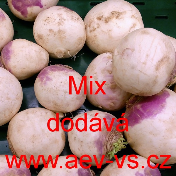 Vodnice brukev řepák (Brassica campestris var. rapa) Mix je výběrová směs vodnic brukví řepáků. Obsahuje vodnice brukve řepáky čistě bílé i se zabarvenou hlavou.