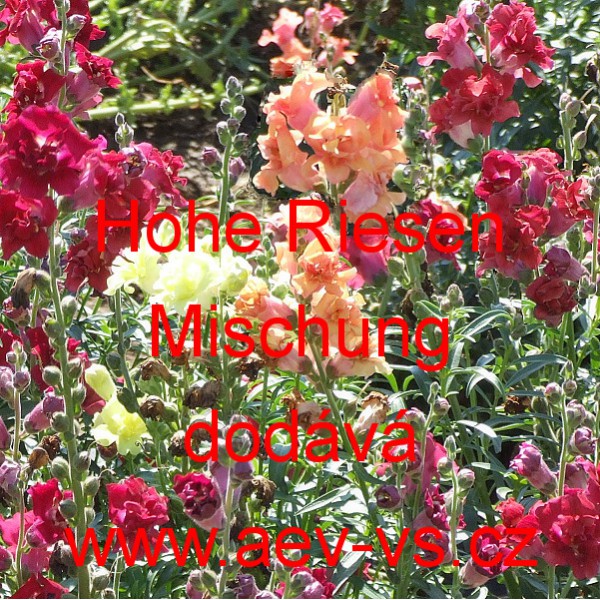 Popis: Hledík větší (Antirrhinum majus maximum) Hohe Riesen Mischung je asi 70 centimetrů vysoká barevná směs jednoletých květin.