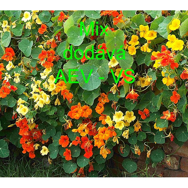 Popis: Lichořeřišnice větší, kapucínka pnoucí (Tropaeolum majus) Mix je asi 200 centimetrů vysoká směs pnoucích jednoletých květin. Hodí se na záhon, do truhlíku, květináče a okrasného koryta.