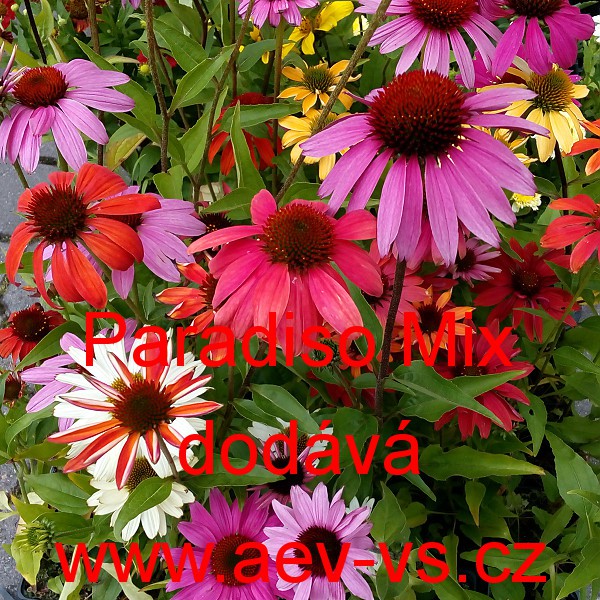 Třapatka nachová zkřížená (Echinacea purpurea x hybrida hort) Paradiso Mix je středně vysoká barevná směs vytrvalých květin.