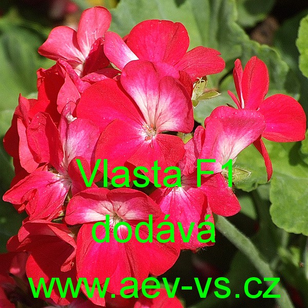Popis: Muškát páskatý (Pelargonium zonale) Vlasta F1 je asi 35 centimetrů vysoká červená jednoletá květina s bílou skvrnou v květu. Obrůstá zelenými listy. Hodí se na záhon, do truhlíku, květináče a okrasného koryta. Semena se dodávají ve výběrové kvalitě Professional Seeds.