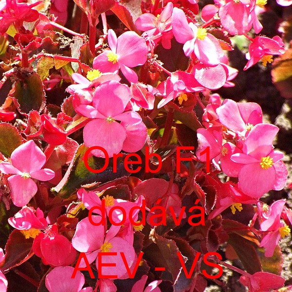 Popis: Kysala stálekvetoucí, ledovka (Begonia semperflorens) Oreb F1 je asi 20 centimetrů vysoká hnědolistá tmavě růžová jednoletá květina. Hodí se na záhon, do truhlíku, květináče a okrasného koryta.