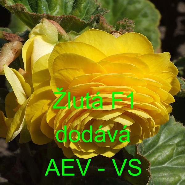 Kysala velkokvětá, hlíznatá (Begonia tuberhybrida) Žlutá F1 je nižší plnokvětá jednoletá květina.