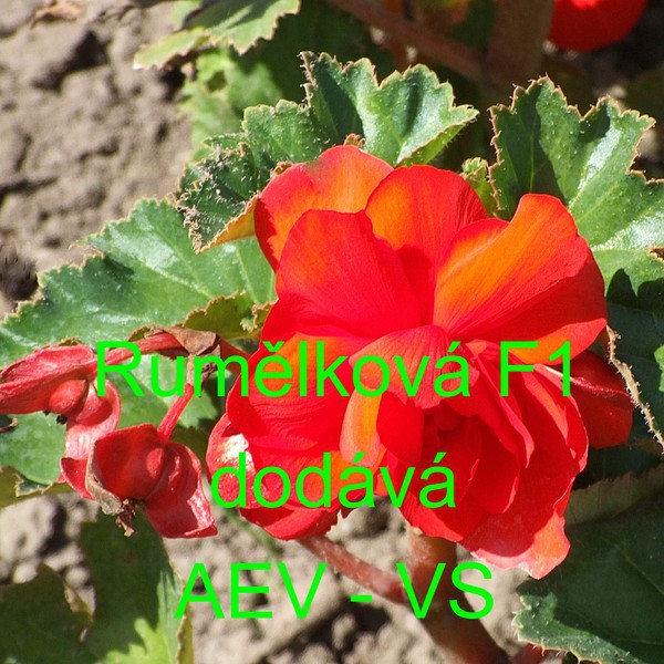 Kysala velkokvětá, hlíznatá (Begonia tuberhybrida) Rumělková F1 je nižší plnokvětá jednoletá květina.