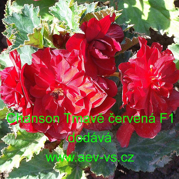 Kysala velkokvětá, hlíznatá, převislá (Begonia tuberhybrida pendula) Chanson Tmavě červená F1 je nízká jednoletá květina. Vytváří až 50 centimetrů dlouhé kvetoucí převisy.