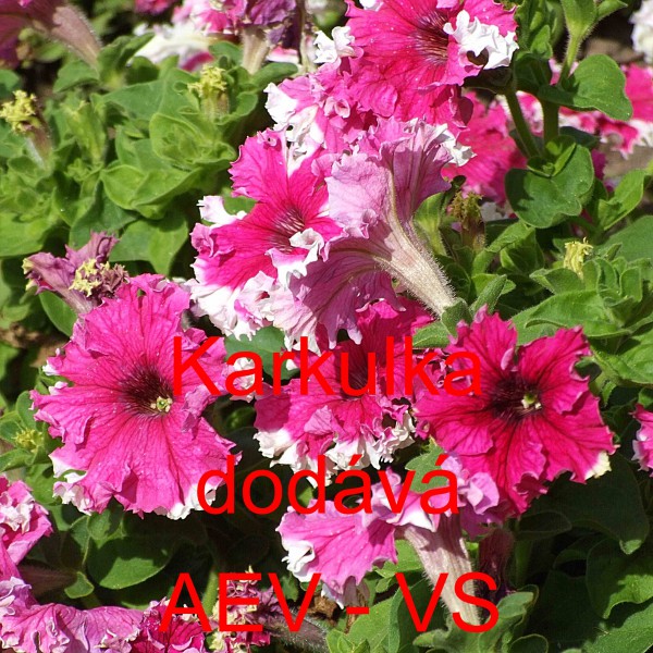 Popis: Petúnie velkokvětá, třepenitá, nízká (Petunia hybrida grandiflora fimbriata nana) Karkulka je asi 40 centimetrů vysoká bílá tmavě růžově fialově pruhovaná velkokvětá jednoletá květina s třepenitými okraji květů. Hodí se na záhon, do truhlíku, květináče a okrasného koryta. Semena se dodávají ve výběrové kvalitě Professional Seeds.